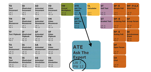 - „tanulási súly” (LW – learning weight), mely az adott modul elvégzéséhez szükséges időintervallumot határozza meg (percben kifejezve) és az
